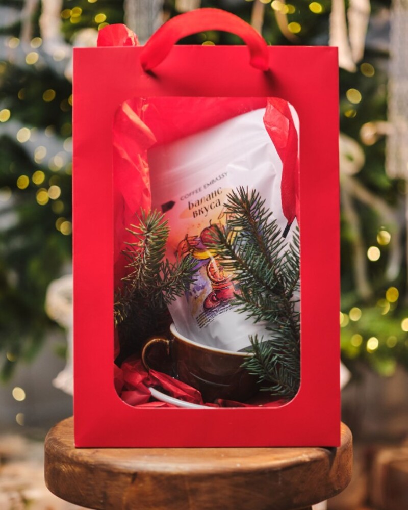 Внутри вас ждёт отборный кофе, 250 гр благородного зерна, готового раскрыть свой характер в вашей чашке. И пара, созданная для единения: две изящные кофейные чашки, что ждут, чтобы наполниться не просто напитком, а настроением.